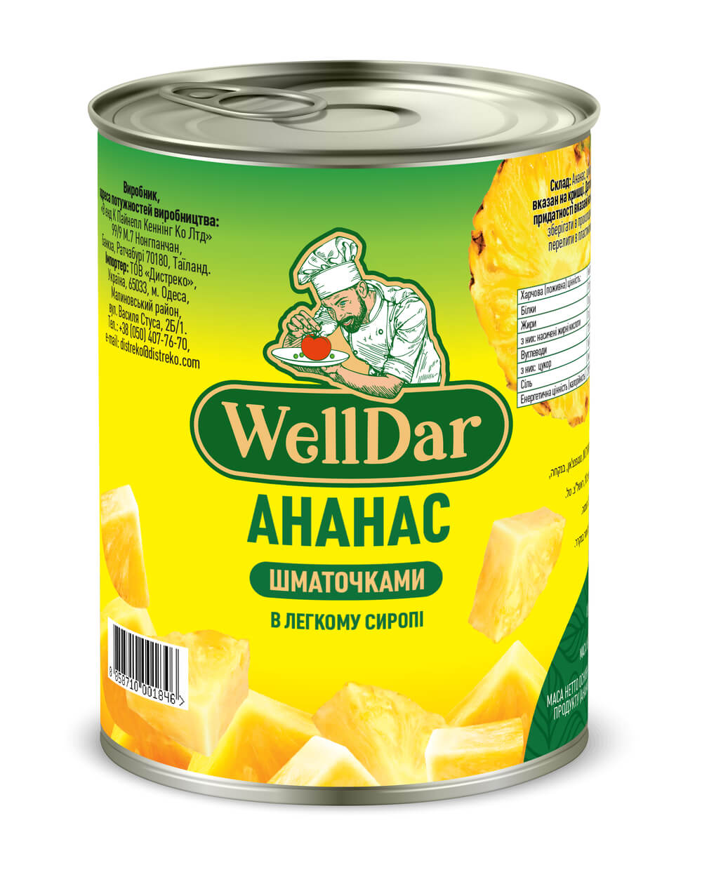 Характеристики Ананас шматочками в легкому сиропі 580мл ТМ WellDar
