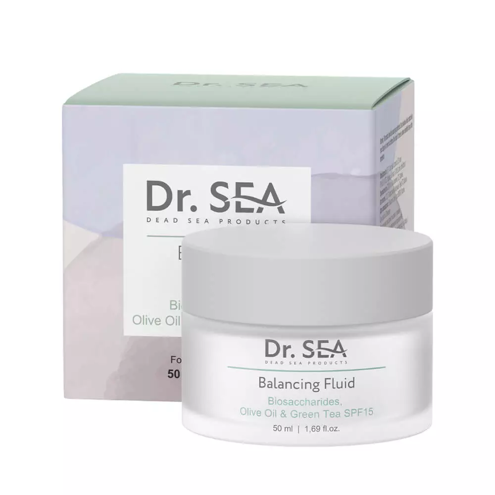 Балансуючий флюїд для обличчя та декольте Dr.Sea з біосахаридами, олією оливи і екстрактом зеленого чаю SPF15, 50 мл