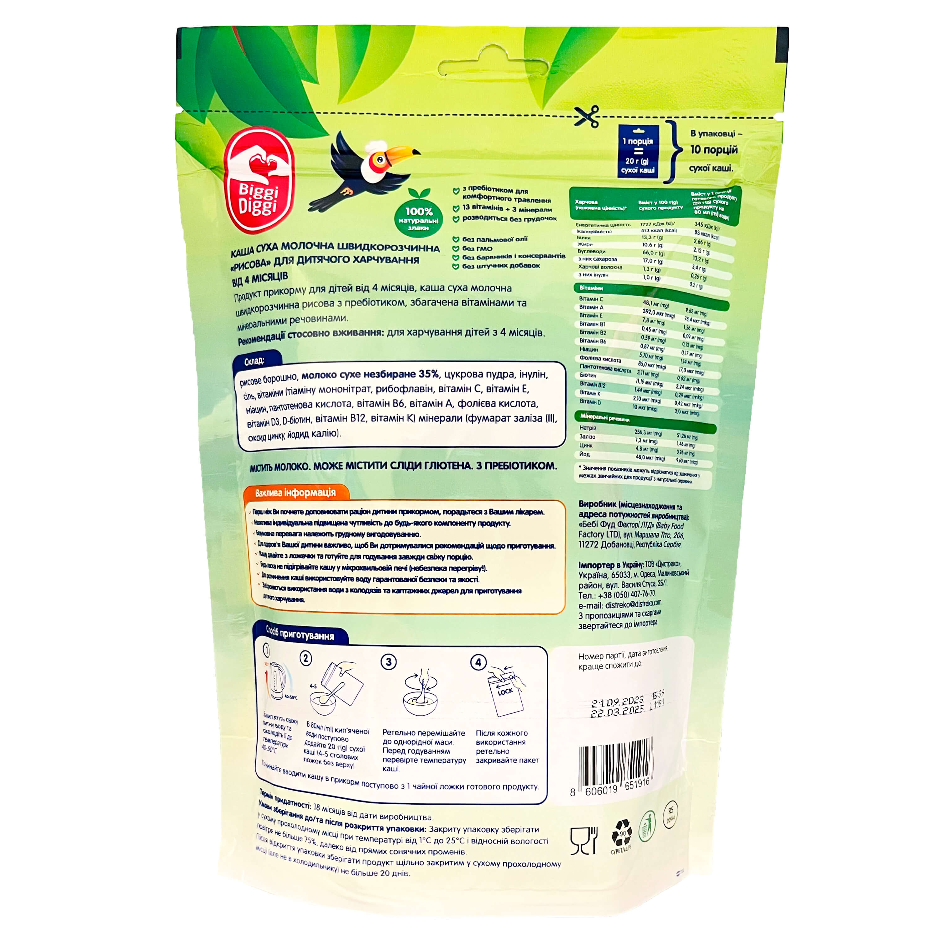 Характеристики BiggiDiggi Каша молочна рисова для дітей з 4 місяців 200г