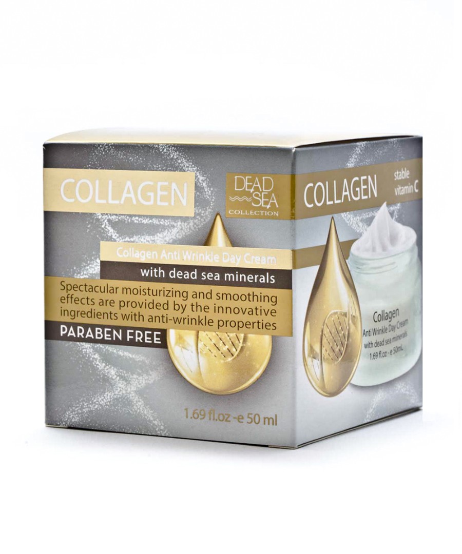 Колагеновий денний крем проти зморшок з натуральними мінералами Мертвого моря не містить парабенів. Крем збагачений натуральними мінералами Мертвого моря, допомагає зволожити шкіру, зменшити зморшки і захистити шкіру від стресу і забруднення навколишнього середовища. Натуральні мінерали Мертвого моря забезпечують глибоке зволоження, збагачуючи шкіру поживними речовинами.