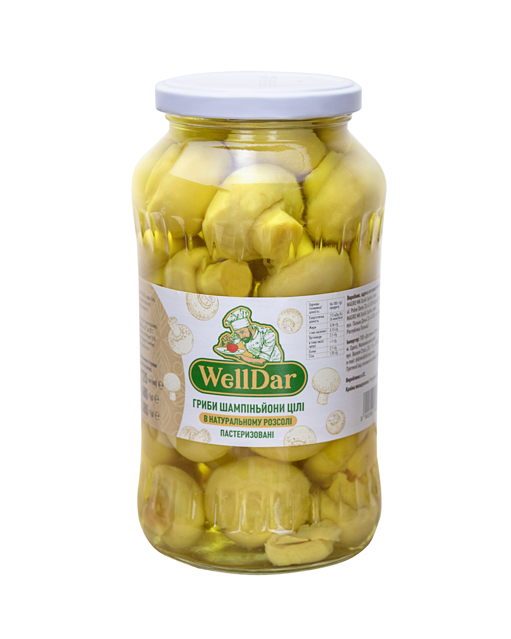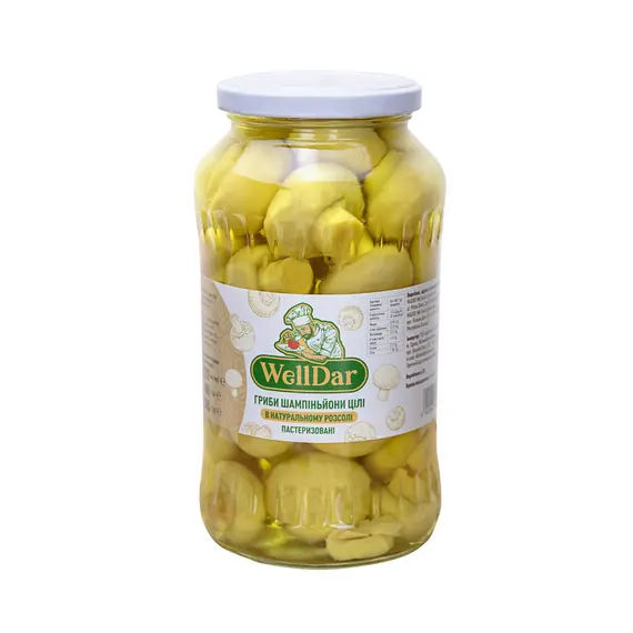 Характеристики Гриби шампіньйони цілі в натуральному розсолі 720 мл ТМ WellDar