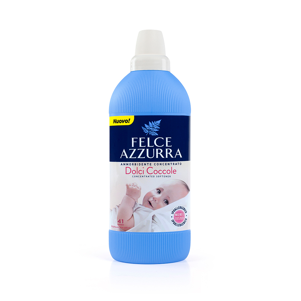 Опис Концентрований пом'якшувач для тканин Paglieri Felce Azzurra Dolci Coccole для чутливої шкіри 1025 мл