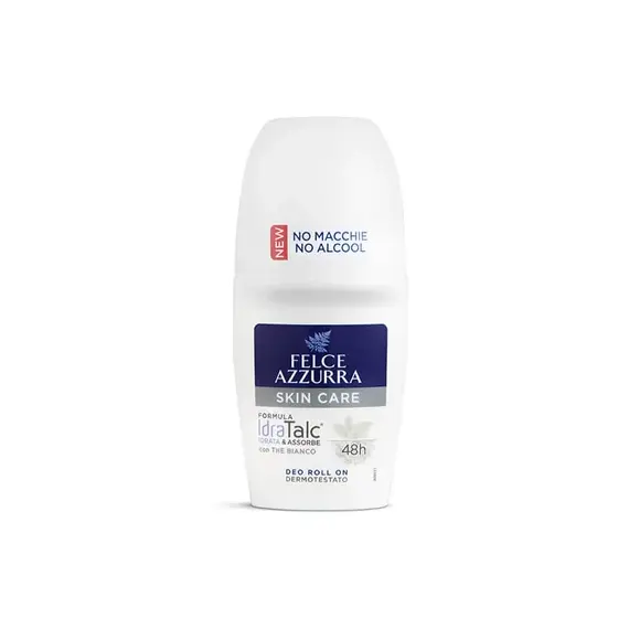 Кульковий дезодорант Felce Azzurra Skin Care із екстрактом білого чаю дарує шкірі захист і турботу до 48 годин. Формула має антиоксидантну дію, допомагаючи нейтралізувати негативний вплив довкілля. Гліцерин і лактат забезпечують глибоке зволоження, а еритритол — натуральний зволожувальний компонент, сприяє утриманню вологи, залишаючи шкіру м'якою та доглянутою. Легкий аромат білого чаю додає відчуття свіжості та чистоти, забезпечуючи комфорт і впевненість упродовж усього дня. Ідеально підходить для чутливої шкіри.