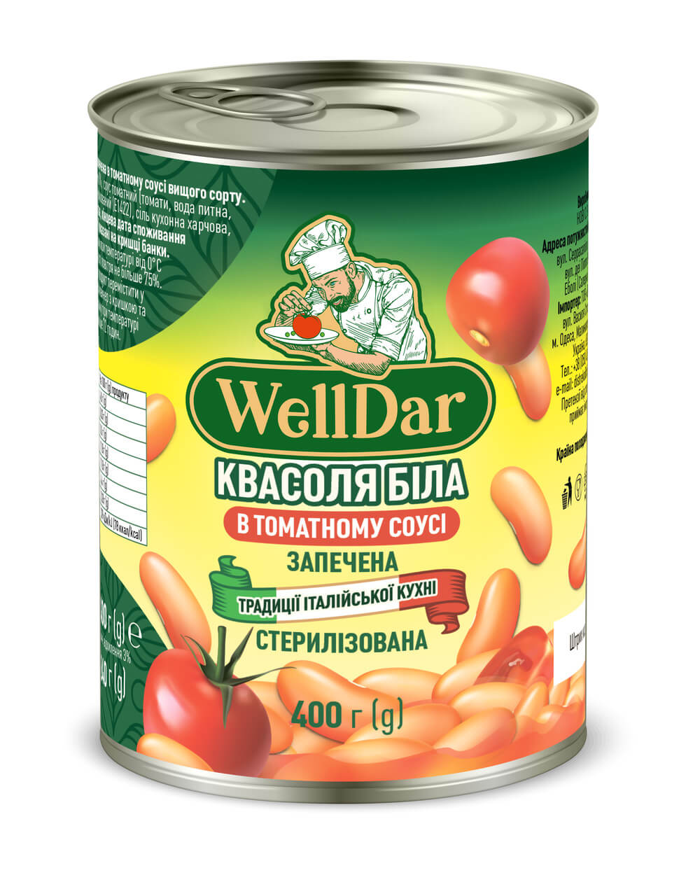 Характеристики Квасоля біла Італійська в томатному соусі запечена 400г ТМ WellDar