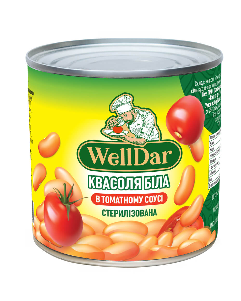 Характеристики Квасоля біла в томатному соусі стерилізована 410г ТМ WellDar