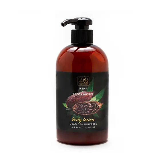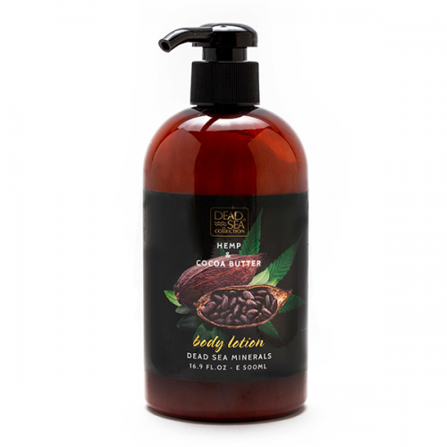 Лосьйон для тіла з маслом конопель та какао, збагачений натуральними мінералами Мертвого моря, пом'якшує, зволожує і освіжає шкіру. Масло какао допомагає зволожити шкіру і відновити її м'якість. Цей лосьйон для тіла допомагає оживити і очистити організм від токсинів. Наша формула дозволяє лосьйону легко вбиратися, і утримувати вологу вашого тіла. Продукт нежирний і підходить для всіх типів шкіри. Принесіть чудеса і силу Мертвого моря в свій будинок, використовуючи заспокійливий і розслабляючий лосьйон для тіла.