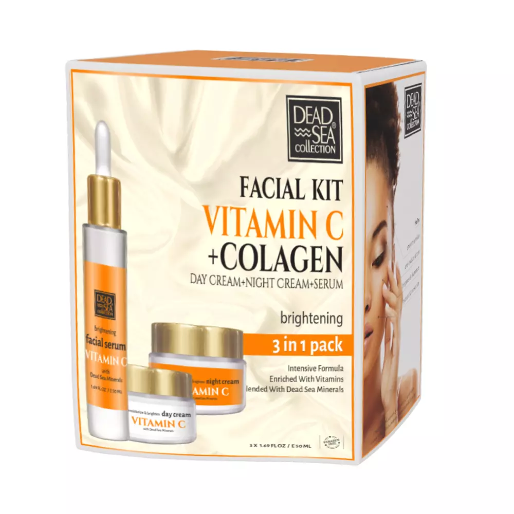 Набір Денний, Нічний крем та Сироватка з колагеном та вітаміно С для зволоження та освітлення шкіри Dead Sea Collection