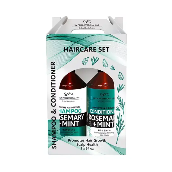 Набір для волосся від Dead Sea Collection, що складається з шампуню та кондиціонера з розмарином та м'ятою, збагачений мінералами Мертвого моря. Він розроблений для стимулювання росту волосся та покращення здоров'я шкіри голови. Розмарин відомий своїми тонізуючими та антисептичними властивостями, що робить ці засоби ідеальними для тонких, ослаблених та нормальних типів волосся. М'ята приносить відчуття свіжості та сприяє покращенню кровообігу шкіри голови. Включення біотину в формулу сприяє зміцненню волосся від коренів до кінчиків, роблячи його сильнішим і життєздатнішим. Використання набору в регулярному догляді допоможе вам досягти густоти, блиску та загального покращення стану вашого волосся.