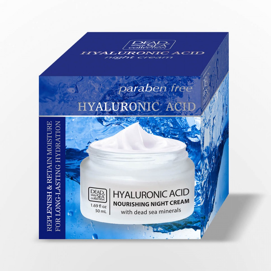 Поживний нічний крем з гіалуроновою кислотою та натуральними мінералами Мертвого моря не містить парабенів. Гіалуронова кислота, збагачена натуральними мінералами Мертвого моря, зволожує шкіру, допомагаючи зменшити тонкі лінії та зморшки, захищаючи шкіру від впливу стресу та повсякденного забруднення. Натуральні мінерали Мертвого моря глибоко зволожують шкіру, надаючи їй оновлений та омолоджуючий вигляд.