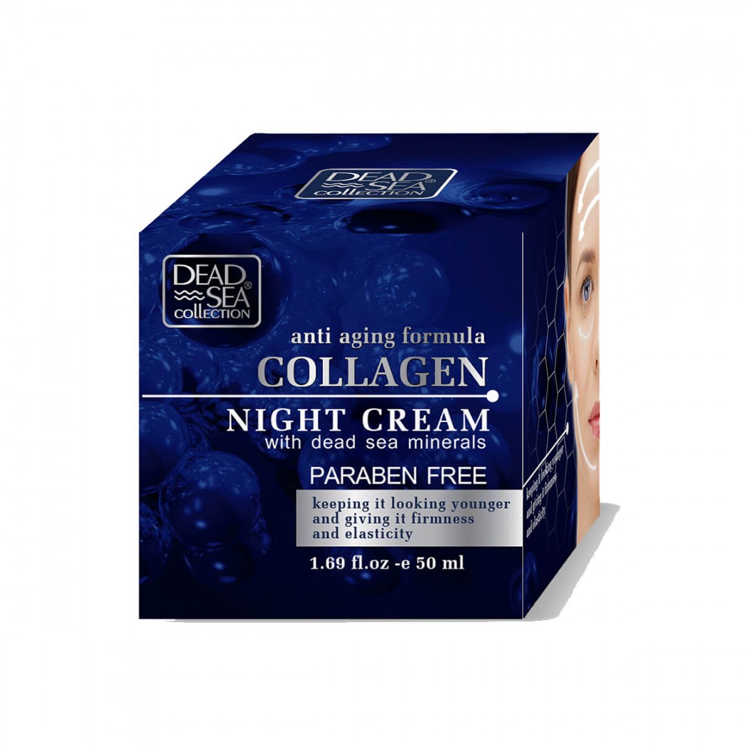 Колагеновий нічний крем проти зморшок з натуральними мінералами Мертвого моря не містить парабенів. Збагачений мінералами Мертвого моря і колагеном, зволожує, допомагає підвищити еластичність шкіри і зменшити зморшки, а також захистити шкіру від впливу навколишнього середовища. Для досягнення максимального ефекту рекомендується використовувати в комплексі з денним кремом для обличчя з колагеном.