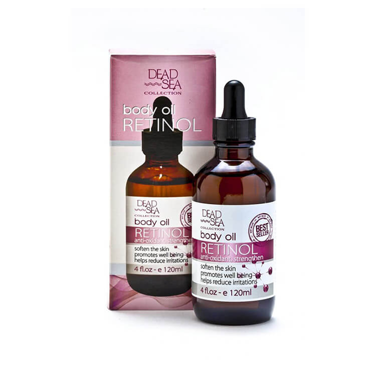 Олія для тіла Dead Sea Collection - це високоякісна олія, збагачена ретинолом, який відомий своїми омолоджувальними властивостями, що сприяють живленню і поліпшенню загального стану шкіри. Антиоксидантні властивості ретинолу інтенсивно зволожують шкіру, в той час як багатий вміст жирних кислот і вітамінів A, D, і E допомагає захищати шкіру від впливу вільних радикалів, запобігаючи передчасному старінню.