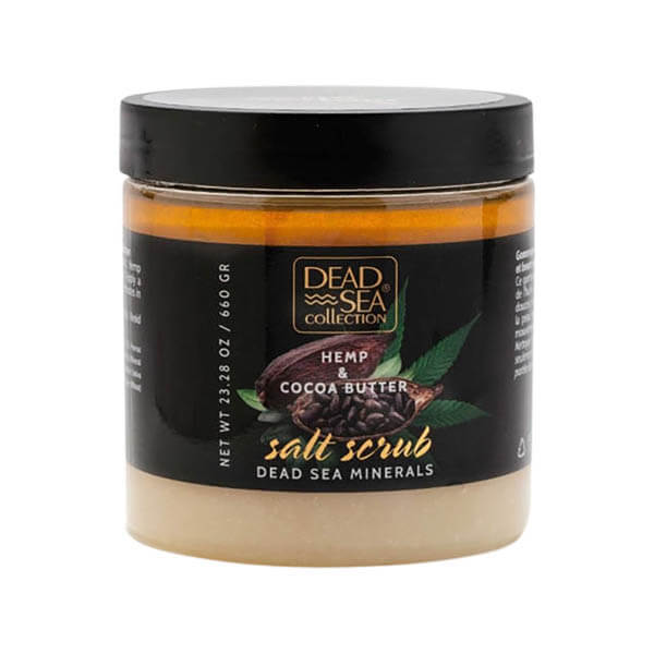 Натуральний сольовий скраб з маслом конопель та какао. Мертве море відоме як перший «СПА» в історії, знаменитості з давніх часів відвідували Мертве море для краси і здоров'я (наприклад, Клеопатра, цариця Шеви, дружина царя Давида Абігайль). Мертве море містить 35% натуральних мінеральних речовин це в 10 разів більше, ніж будь-яка інша морська вода в світі, і тому славиться як краще місце для лікування шкірних захворювань. Є певні мінерали, такі як магній і калій, які можна знайти тільки в Мертвому морі. Зв'язок між цими фактами і індустрією краси полягає в тому, що сьогодні завдяки науці ми знаємо, що ці мінерали є ідеальним рішенням для глибокого зволоження і живлення шкіри.