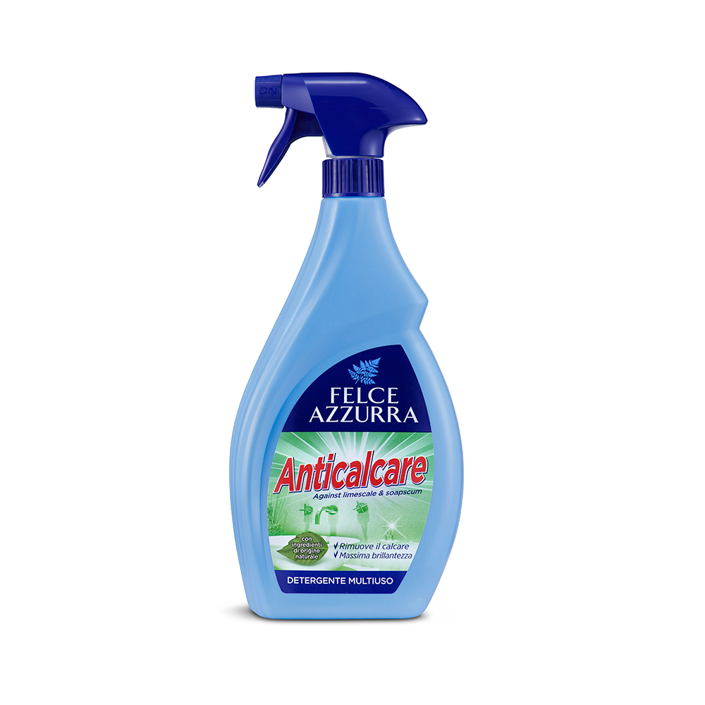 Felсe Azzurra Bagno виконує відразу 4 функції: видаляє мінеральний наліт, жири, іржу, застояну бруд з кранів, сантехніки, керамічної плитки, пластмаси, скла та ін. На всіх поверхнях, схильних до дії води, утворюється вапняний наліт. В результаті душові кабіни, ванни, раковини, робочі поверхні на кухні втрачають свій первинний вигляд, покриваючись непривабливим тьмяним шаром. Засіб Felсe Azzurra Bagno ефективно видаляє вапняні відкладення з поверхні кахельної плитки, раковин, душових кабін, ванн, туалету. Регулярне використання, запобігає появі іржі і надає сантехніці сяючий вигляд. Оснащений зручним розпилювачем.