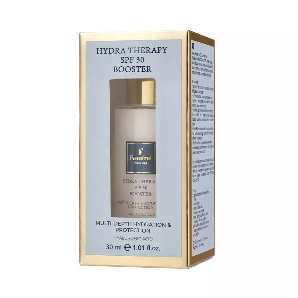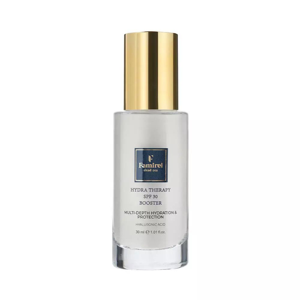 Зволожувальна сироватка-бустер Famirel Hydra Therapy Booster гіалурон, гамамеліс, SPF 30 (UVA/UVB), 30 мл