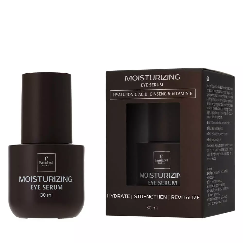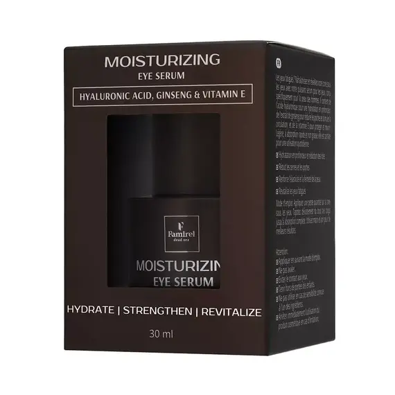 Сироватка забезпечує інтенсивне зволоження і знімає набряклість завдяки гіалуроновій кислоті, пантенолу, екстрактам женьшеню та імбиру. Вітамін E, ніацинамід і екстракт солодки мають антиоксидантну та освітлювальну дію, допомагають боротися з темними колами і вирівнюють тон шкіри. Легка текстура глибоко живить і підвищує пружність, робить шкіру навколо очей більш гладкою і сяючою. Підходить для всіх типів шкіри і дає швидкий, помітний результат.