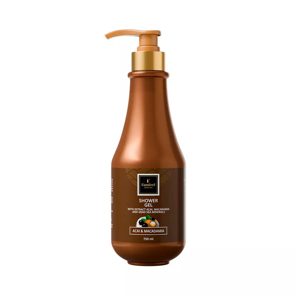 Зволожувальний і живильний гель для душу Famirel з екстрактом асаї, макадамії та мінералами Мертвого моря для всіх типів шкіри, 750 мл Фамірель